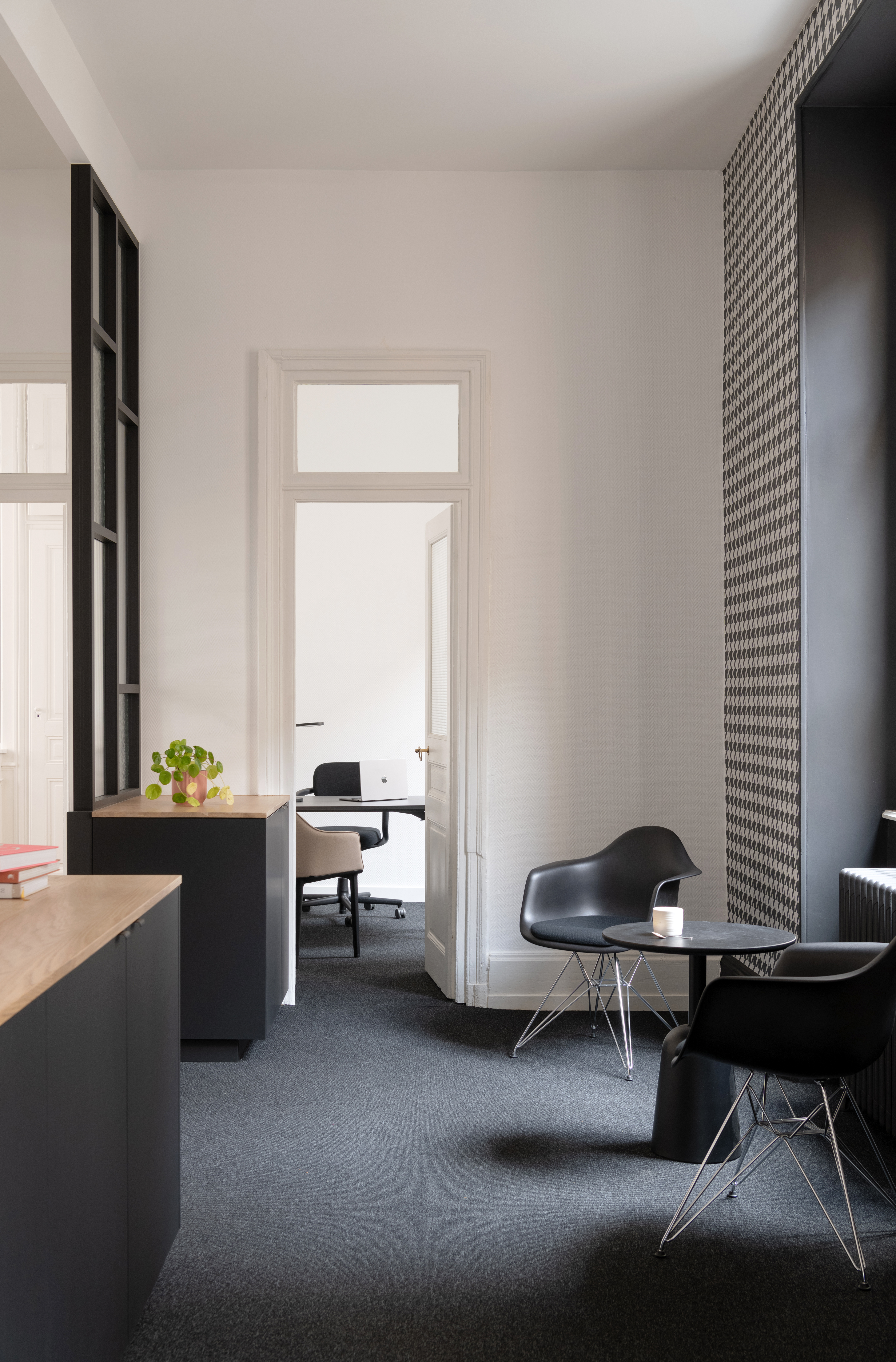 Sur la presqu’île lyonnaise, aménagement de bureaux pour des avocats. Noir & Blanc se mêlent avec douceur pour un espace entièrement repensé. Une jolie réussite.